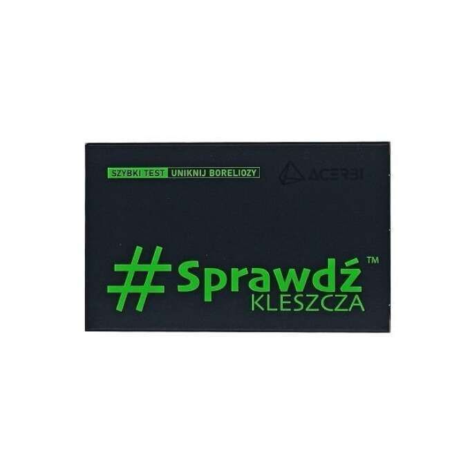 OpisProdukt medyczny w formie testu diagnostycznego, przeznaczony do użytku w warunkach domowych, służy do samodzielnego sprawdzenia, czy usunięty ze skóry kleszcz jest zainfekowany bakteriami boreliozy. Test pozwala na wykrycie obecności bakterii B. garinii, B. afzelii, B. burgdorferi i B. spielmanii.