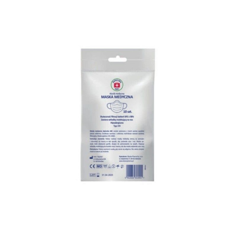 OpisMaseczka medyczna składa się z trzech warstw wysokiej jakości włóknin, z których środkowa warstwa jest z włóknin typu „melt-blown”, pełniących funkcję użytkową filtracyjną.