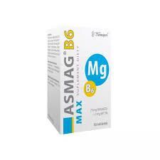 OpisAsmag B6 Max to suplement diety dla os贸b doros艂ych, kt贸ry zawiera magnez oraz witamin臋 B6.