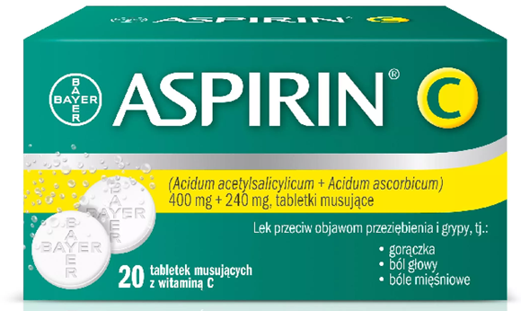 Aspirin C firmy Bayer jest przeznaczony dla doros艂ych i dzieci powy偶ej 12 roku 偶ycia. Pomaga 艂agodzi膰 objawy przezi臋bienia i grypy, takie jak gor膮czka, b贸l g艂owy i b贸l gard艂a.
