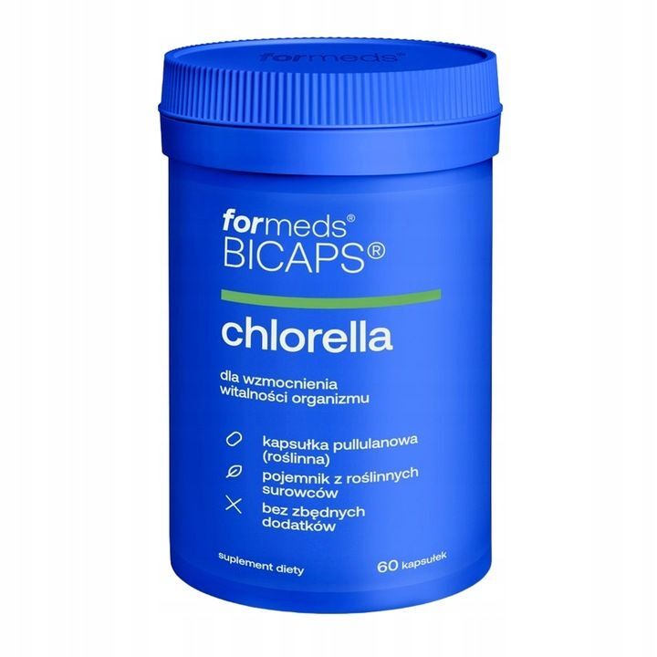 OpisBicaps Chlorella marki Formeds to suplement diety zawieraj膮cy skoncentrowan膮 dawk臋 chlorelli, uprawianej w kontrolowanych warunkach, co zapewnia zgodno艣膰 z normami dotycz膮cymi poziomu zanieczyszcze艅. Opakowanie zawiera 60 kapsu艂ek, a pojemnik zosta艂 wykonany z ekologicznych, ro艣linnych surowc贸w.