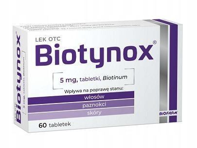 OpisBiotynox to lek zawieraj膮cy biotyn臋, kt贸ry wspomaga leczenie problem贸w takich jak wypadanie w艂os贸w, zaburzenia wzrostu w艂os贸w i paznokci, a tak偶e stany zapalne sk贸ry, szczeg贸lnie wok贸艂 oczu i nosa.