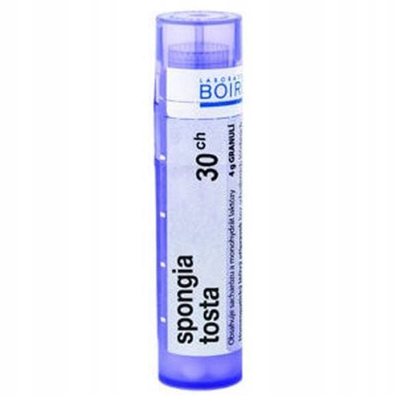 OpisBoiron Spongia Tosta 30 CH to homeopatyczny preparat leczniczy, dost臋pny bez recepty, kt贸ry nie posiada okre艣lonych wskaza艅 leczniczych i nie jest obj臋ty refundacj膮.