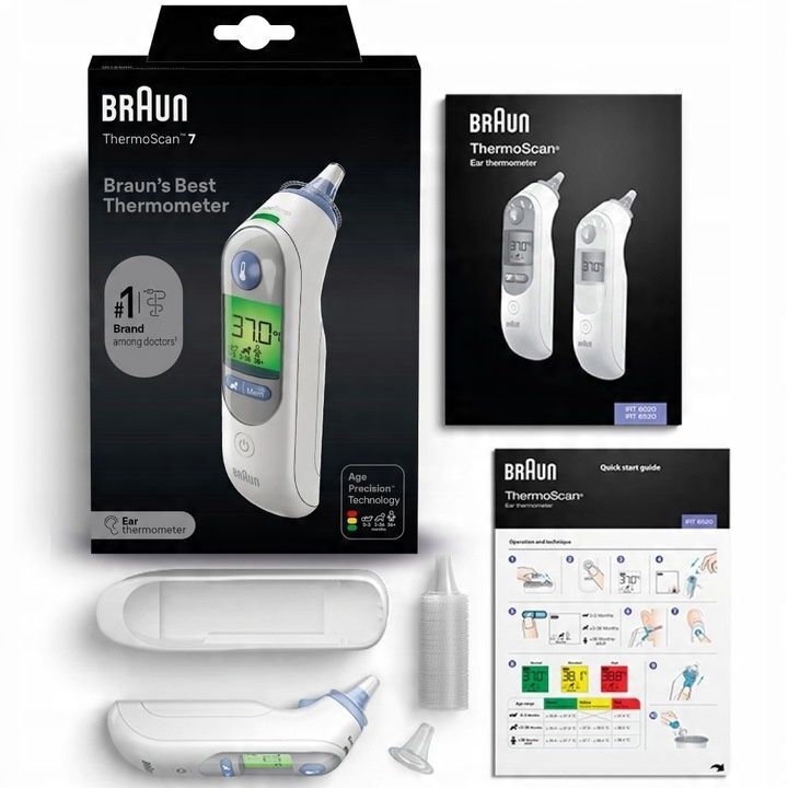 - Dodatkowo, w zestawie znajdują się kapturki higieniczne Braun – jednorazowe osłonki na sondę dla zapewnienia pełnej higieny w trakcie stosowania wyrobu.