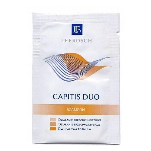 WłaściwościCAPITIS DUO jest szamponem o działaniu przeciwłupieżowym i przeciwgrzybiczym. Dzięki zawartości dwóch substancji o działaniu przeciwgrzybiczym (ketokonazol oraz siarczek selenu) powiększono zakres skuteczności działania szamponu.
