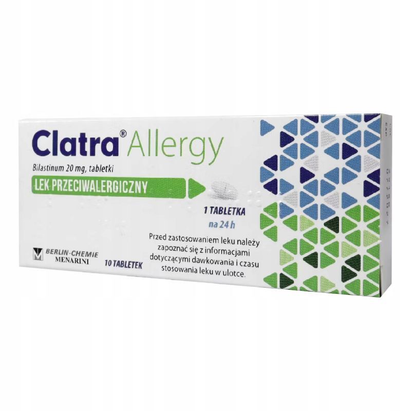 OpisClatra Allergy to lek zawieraj膮cy bilastyn臋 jako substancj臋 czynn膮. S艂u偶y do 艂agodzenia objaw贸w kataru siennego, takich jak kichanie, 艣wi膮d, katar, zatkany nos, oraz zaczerwienione i 艂zawi膮ce oczy. Mo偶e r贸wnie偶 by膰 stosowany w leczeniu innych postaci alergicznego zapalenia b艂ony 艣luzowej nosa oraz sw臋dz膮cych wysypek sk贸rnych.