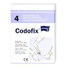 OpisCodofix to elastyczna siatka opatrunkowa, stosowana jako wyrób medyczny do stabilizacji opatrunków. Rozmiar 4 jest odpowiedni do zastosowania na takich partiach ciała jak podudzie, kolano, ramię, stopa czy łokieć. W stanie nierozciągniętym jej szerokość wynosi od 3,5 do 4,5 cm, a długość 1 metr. Po rozciągnięciu może osiągnąć długość do 2,5 metra.