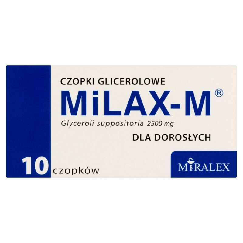 OpisMilax-M 2500 mg to czopki glicerolowe przeznaczone dla os贸b doros艂ych, stosowane w przypadku zapar膰 jako 艣rodek wspomagaj膮cy proces wypr贸偶niania.