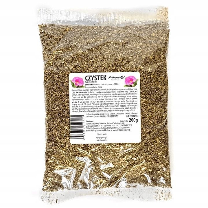 - Zawartość liścia czystka w przeliczeniu na zalecaną do spożycia dzienną porcję produktu wynosi 1,5 g.