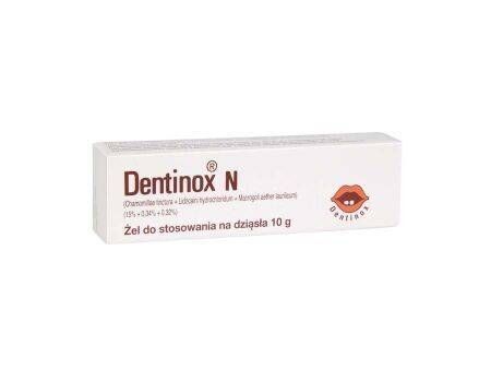 OpisDentinox N to lek stosowany w przypadku podrażnienia dziąseł i bólów związanych z ząbkowaniem, tj. wyrzynaniem się zębów mlecznych.