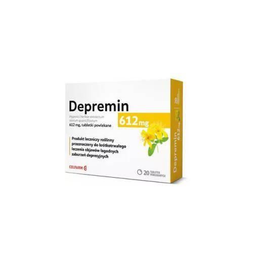 OpisDepremin 612 mg w formie tabletek powlekanych to lek pochodzenia roślinnego, wykorzystywany w krótkoterminowym leczeniu łagodnych objawów depresji. Preparat dedykowany jest osobom dorosłym.