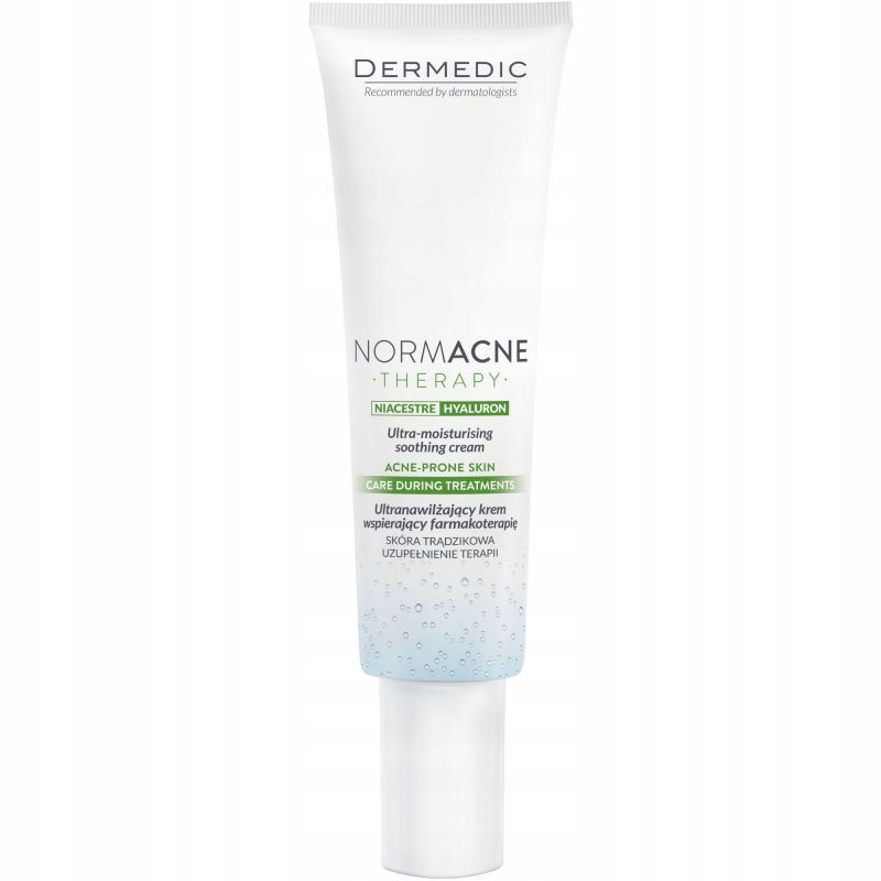 OpisDermedic Normacne Therapy to ultranawilżający krem, który wspomaga farmakoterapię. Przeznaczony do codziennej pielęgnacji wrażliwej skóry mieszanej oraz tłustej, doskonale sprawdza się w trakcie terapii retinoidami oraz antybiotykoterapii.