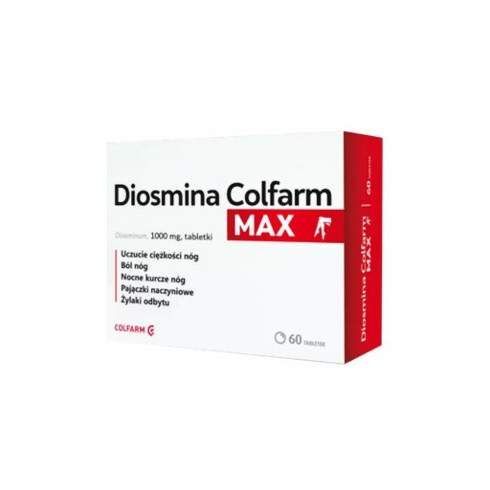 OpisDiosmina Colfarm Max to lek zawierający zmikronizowaną diosminę, stosowany w łagodzeniu objawów takich jak uczucie ciężkości, ból nóg oraz nocne skurcze. Ponadto, diosmina wzmacnia naczynia krwionośne, zmniejszając ich podatność na pękanie.