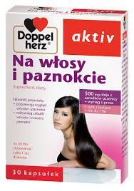 OpisDoppelherz aktiv Na włosy i paznokcie + cynk to suplement diety wspierający zdrowie włosów i paznokci, przeznaczony dla dorosłych. Produkt nie zawiera laktozy.