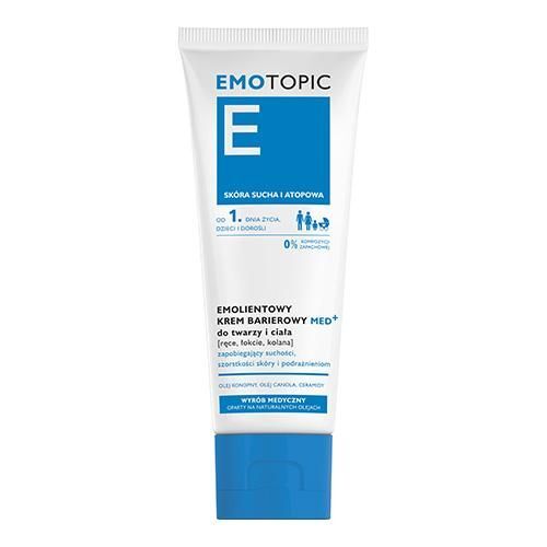 OpisEmotopic Med+ to specjalistyczny krem barierowy o właściwościach emolientowych, przeznaczony do pielęgnacji twarzy i ciała. Stworzony z myślą o skórze suchej i atopowej, skutecznie chroni ją przed szkodliwym działaniem czynników zewnętrznych, takich jak wiatr, chłód czy suche powietrze. Jego bogata receptura, oparta na naturalnych olejach, intensywnie natłuszcza, koi podrażnienia i redukuje objawy przesuszenia – w tym szorstkość i uczucie ściągnięcia. Może być stosowany na całe ciało, ze szczególnym uwzględnieniem miejsc narażonych na wysuszenie, takich jak łokcie, kolana czy dłonie. Odpowiedni dla dzieci i dorosłych – bez ograniczeń wiekowych.