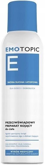 OpisEmotopic, przeciwświądowy preparat kojący MED+, to wyrób medyczny stosowany w celu złagodzenia uporczywego świądu i pieczenia skóry występujących przy atopowym zapaleniu skóry oraz innych dermatozach zapalnych, takich jak wyprysk czy łuszczyca. Jest rekomendowany dla skóry suchej, skłonnej do nadmiernego łuszczenia się, zaczerwienień i podrażnień. Preparat może być stosowany po ukończeniu 6. miesiąca życia, zarówno u dzieci, jak i dorosłych.