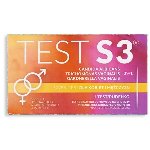 W艂a艣ciwo艣ci- Test S3 to test wykrywaj膮cy infekcje intymne grzybem Candida albicans, pierwotniakiem Trichomonas vaginalisi bakteri膮 Gardnerell膮 vaginalis. Patogeny te wywo艂uj膮 kolejno: dro偶d偶yc臋 (grzybic臋), rz臋sistkowic臋 pochwow膮 i bakteryjna zaka偶enie pochwy. Schorzenia te mog膮 objawia膰 si臋 obfitymi up艂awami, pieczeniem, sw臋dzeniem, zaczerwienieniem i nieprzyjemnym zapachem.