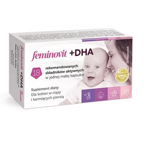 OpisFeminovit + DHA to suplement diety przeznaczony dla kobiet w ciąży oraz karmiących piersią.