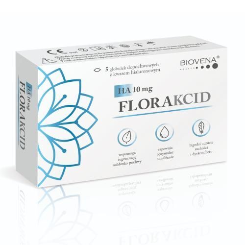 OpisFlorakcid HA 10 mg to globulki dopochwowe, b臋d膮ce wyrobem medycznym, kt贸ry skutecznie wspiera odpowiednie nawil偶enie nab艂onka pochwy.