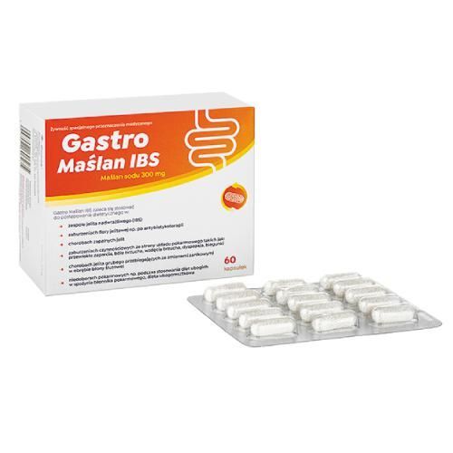 OpisGastro Maślan IBS to żywność medyczna w formie mikropeletek, zawierająca kwas masłowy. Preparat w kapsułkach jest przeznaczony dla dorosłych oraz dzieci powyżej 7. roku życia.