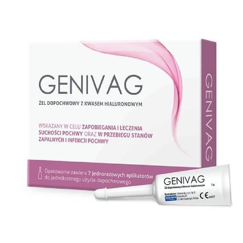 OpisGENIVAG to 偶el dopochwowy zawieraj膮cy kwas hialuronowy, przeznaczony do zapobiegania oraz leczenia sucho艣ci pochwy oraz stan贸w zapalnych i infekcji. Produkt dzia艂a jako bariera ochronna, pomagaj膮c w naprawie uszkodze艅 spowodowanych sucho艣ci膮 pochwy oraz wspieraj膮c powr贸t b艂ony 艣luzowej do normalnego stanu fizjologicznego.