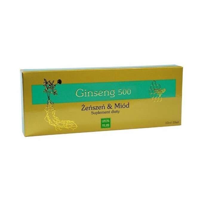 OpisGinseng 500 to suplement diety w formie płynnej, zawierający sproszkowany korzeń żeń-szenia oraz miód. Płyn, dostępny w wygodnych fiolkach z dzienną porcją, jest przeznaczony jako uzupełnienie diety dla osób dorosłych.