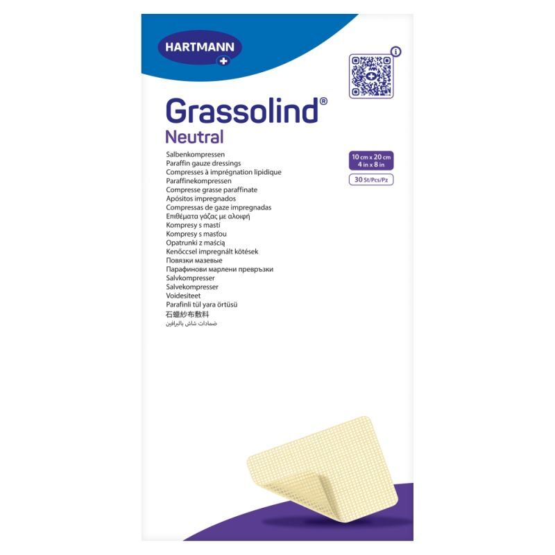 WłaściwościGrassolind neutral to opatrunek wykonany z siatki tiulowej o dużych oczkach z czystej bawełny, impregnowanej maścią nie zawierającą wody. Siatka tiulowa o dużych oczkach umożliwia łatwy odpływ wydzieliny, z kolei maść zapewnia elastyczność brzegów rany, sprzyjając tworzeniu się tkanki ziarninowej, wspomagając proces epitelizacji i zapobiegając przyklejaniu się opatrunku do rany. Zmiana opatrunku jest bezbolesna i nie powoduje podrażnienia tkanki ziarninowej i warstwy młodego nabłonka.
