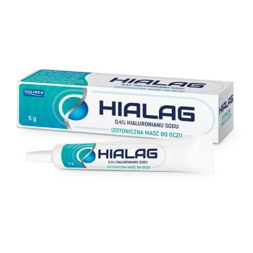 Hialag jest wskazana do łagodzenia objawów suchego oka oraz niedomykalności powiek. Ten wyrób medyczny zawiera 0,4% hialuronianu sodu, który zawiera substancje nawilżające i chroni powierzchnię oka.