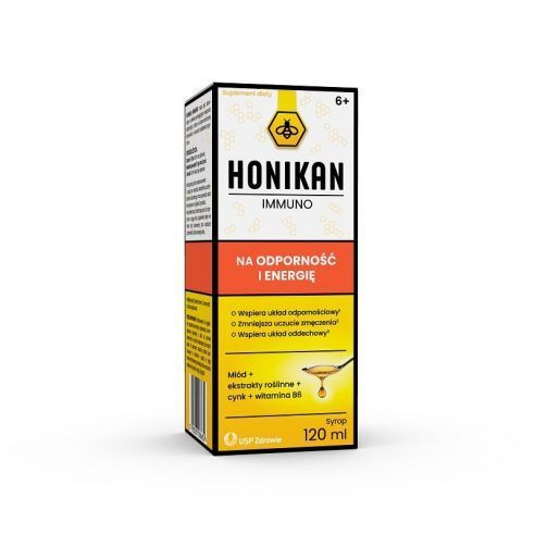 - Suplement diety Honikan Immuno Odporność i Energia, 120 ml nie może być stosowany jako substytut (zamiennik) zróżnicowanej diety.
