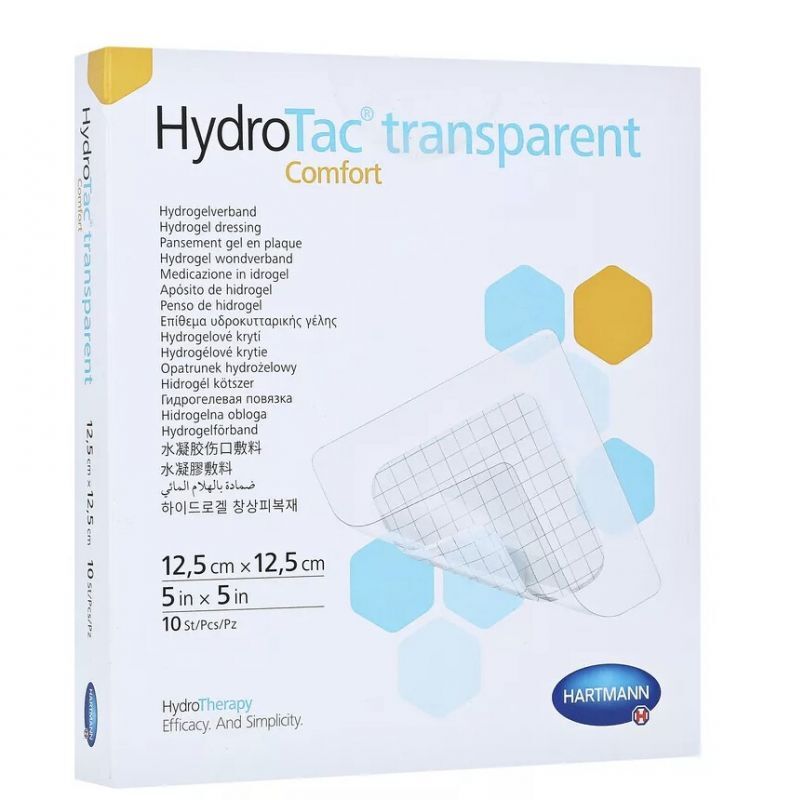 HydroTac Transparent Comfort, 12,5 cm x 12,5 cm, opatrunek hydrożelowy, 10 opatrunków