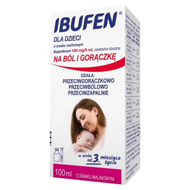 Ibufen dla dzieci o smaku malinowym zaw doustna 100mg/ 5ml opak 100 ml