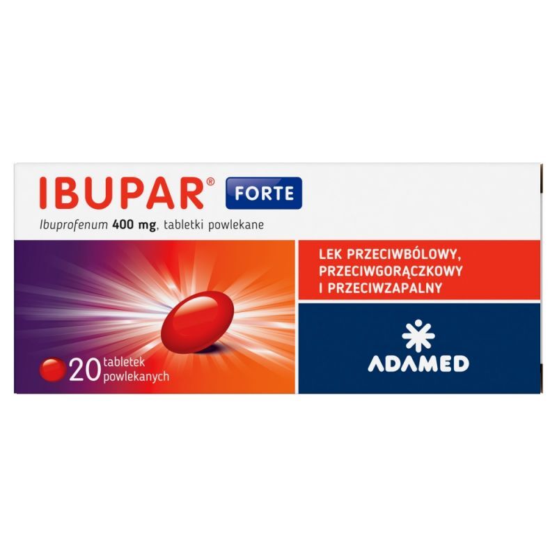 OpisIbupar Forte to lek przeciwb贸lowy i przeciwgor膮czkowy stosowany przy b贸lach g艂owy, z臋b贸w, staw贸w, nerwob贸lach, przezi臋bieniu, gor膮czce i bolesnym miesi膮czkowaniu.