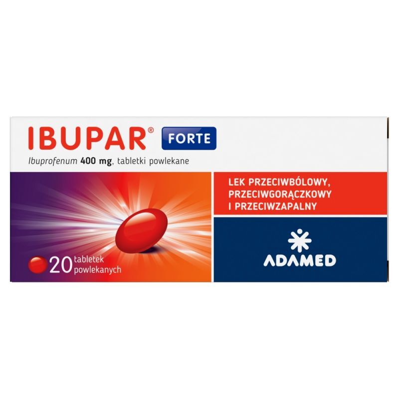 OpisIbupar Forte to lek o dzia艂aniu przeciwb贸lowym i przeciwgor膮czkowym, stosowany w leczeniu b贸l贸w g艂owy, z臋b贸w, staw贸w, nerwob贸l贸w, a tak偶e w przypadku przezi臋bienia, gor膮czki i bolesnego miesi膮czkowania.