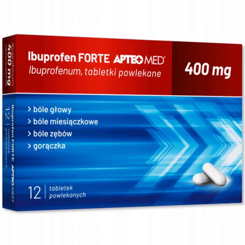 OpisIbuprofen APTEO MED zawiera 400 mg ibuprofenu, który jest częścią grupy niesteroidowych leków przeciwzapalnych (NLPZ) mających na celu łagodzenie bólu i obniżanie gorączki. Lek ten jest stosowany do krótkotrwałego leczenia objawowego bólu o łagodnym lub umiarkowanym nasileniu, w tym bólu głowy, menstruacyjnego, zębów oraz w przypadkach gorączki.