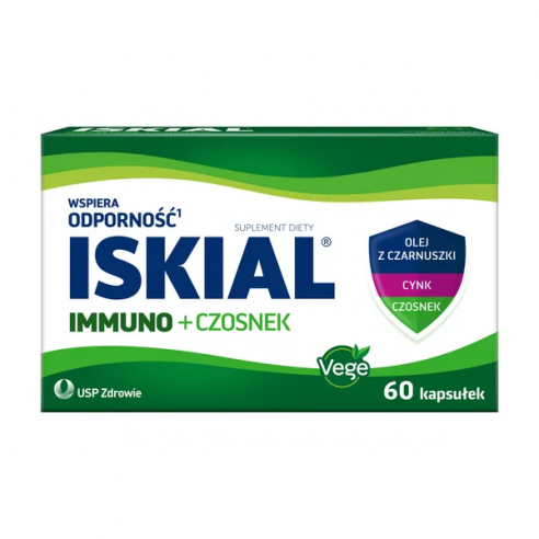 OpisIskial Immuno + Czosnek to suplement diety odpowiedni dla wegan i wegetarian, oparty na składnikach pochodzenia roślinnego. Zawiera olej z czarnuszki, ekstrakty z czosnku i rozmarynu, a także cynk i witaminę E. Preparat został stworzony, aby uzupełniać dietę dorosłych oraz dzieci powyżej 6. roku życia w te wartościowe składniki aktywne. Suplement Iskial Immuno + Czosnek jest szczególnie zalecany w okresie jesienno-zimowym oraz podczas wiosennego przesilenia.