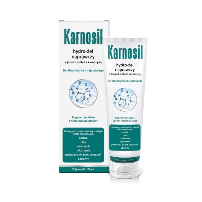 Karnosil, hydro-偶el naprawczy z jonami srebra i karnozyn膮, to aktywny dermokosmetyk medyczny, kt贸ry przyspiesza regeneracj臋 sk贸ry. Poprzez precyzyjn膮 i lokaln膮 aplikacj臋 tworzy warstw臋 okluzyjn膮, ograniczaj膮c parowanie wody i zmniejszaj膮c jej utrat臋 przez nask贸rek. Karnosil skutecznie piel臋gnuje i chroni sk贸r臋, dzia艂aj膮c jak plaster, jednocze艣nie wspomagaj膮c utrzymanie w dobrej kondycji podra偶nionej sk贸ry.