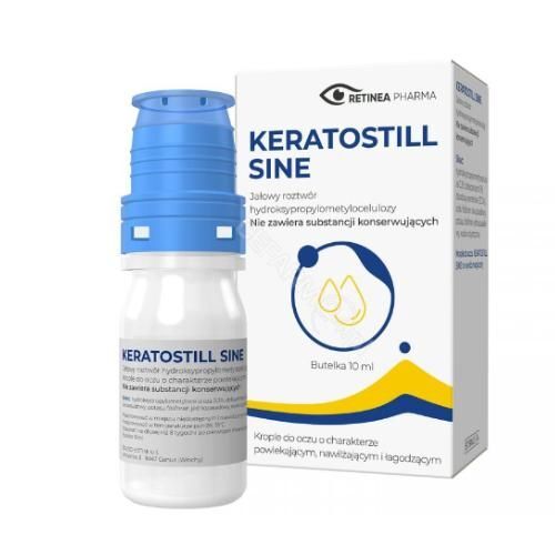 OpisKeratostill Sine krople do oczu to sterylny wodny roztw贸r hydroksypropylometylocelulozy o st臋偶eniu 0,3%, kt贸ry nie zawiera konserwant贸w. S膮 przeznaczone do stosowania na tkanki oka, aby z艂agodzi膰 uczucie sucho艣ci lub podra偶nienia, kt贸re mog膮 by膰 spowodowane przebywaniem w klimatyzowanych pomieszczeniach, kontaktem z kurzem, promieniowaniem s艂onecznym, niewystarczaj膮c膮 ilo艣ci膮 snu, d艂ugotrwa艂膮 prac膮 przy komputerze lub niew艂a艣ciwym o艣wietleniu.