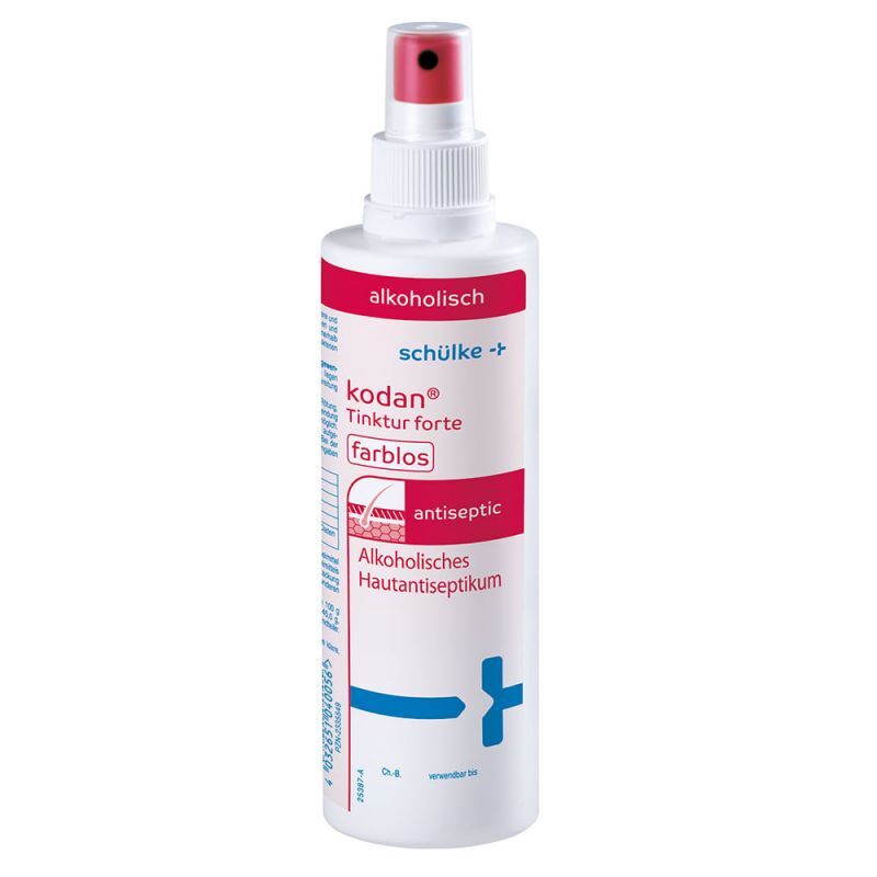 Kodan Tinktur Forte to bezbarwny p艂yn dezynfekuj膮cy przeznaczony do stosowania na sk贸rze. Ma szerokie spektrum dzia艂ania, w tym bakteriob贸jcze, wirusob贸jcze i grzybob贸jcze w艂a艣ciwo艣ci.