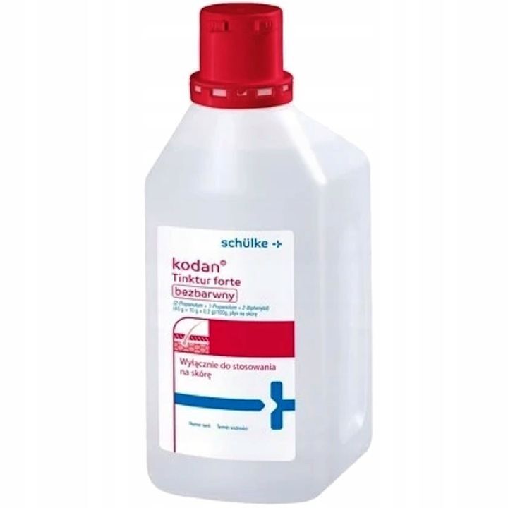 OpisKodan Tinktur forte, bezbarwny, jest przeznaczony do dezynfekcji sk贸ry przed zabiegami operacyjnymi, cewnikowaniem 偶y艂, pobieraniem krwi i p艂yn贸w ustrojowych, zastrzykami (w tym szczepieniami), punkcjami, biopsjami, zdejmowaniem szw贸w oraz do higienicznej dezynfekcji r膮k. Dzia艂a r贸wnie偶 zapobiegawczo przeciwko grzybicom sk贸ry.