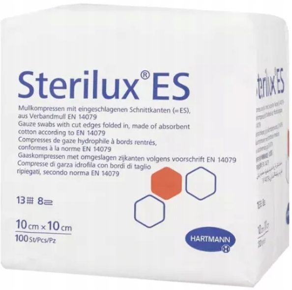 OpisKompresy Sterilux ES to niesterylne opatrunki wykonane z bawe艂nianej gazy o podwini臋tych brzegach, zapewniaj膮cych dodatkow膮 trwa艂o艣膰 i komfort stosowania. Posiadaj膮 13-nitkow膮 struktur臋 i sk艂adaj膮 si臋 z 8 warstw materia艂u, co sprawia, 偶e s膮 odpowiednie do podstawowej piel臋gnacji ran. Dost臋pne w rozmiarze 10 x 10 cm, pakowane po 100 sztuk.