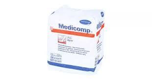 OpisMedicomp to zestaw 100 niejałowych, czterowarstwowych kompresów włóknistych. Wyrób medyczny o wymiarach 7,5 × 7,5 cm.