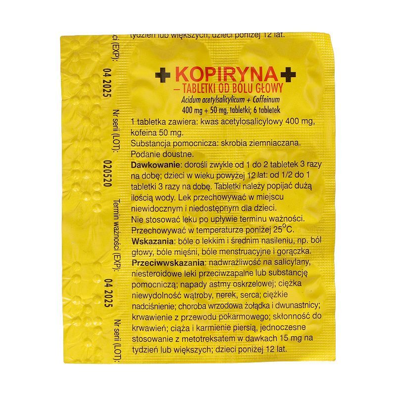 OpisKopiryna - tabletki przeciwb贸lowe to lek stosowany w przypadku b贸lu o lekkim i 艣rednim nasileniu, takiego jak b贸l g艂owy, b贸l mi臋艣ni, b贸l menstruacyjny oraz gor膮czka.