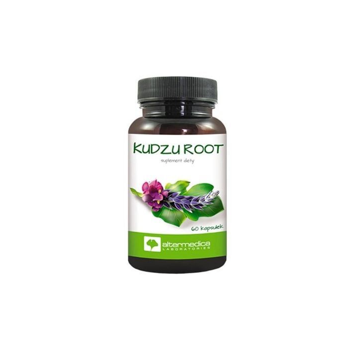Suplement diety KUDZU ROOT zawiera kapsu艂ki z ekstraktem i sproszkowanym korzeniem Kudzu.