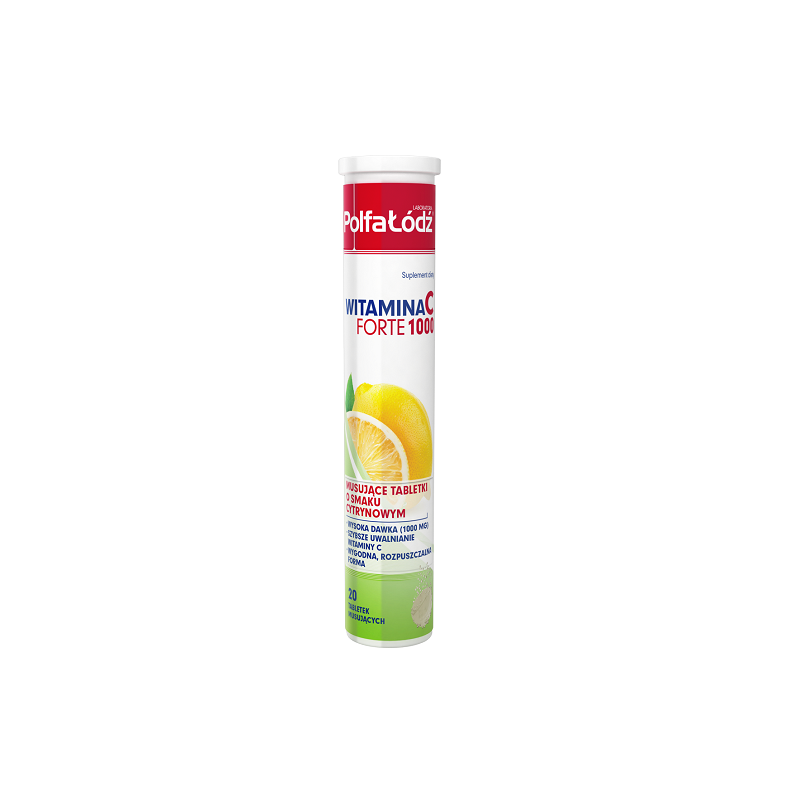 OpisWitamina C Forte 1000 Laboratoria PolfaŁódź to suplement diety w formie musujących tabletek o smaku cytrynowym. Każda tabletka dostarcza 1000 mg witaminy C, co czyni ją idealnym uzupełnieniem codziennej diety dorosłych, szczególnie w okresach zwiększonego zapotrzebowania na tę witaminę.