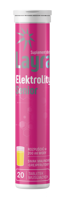 Layra Elektrolity senior to suplement kt贸ry, zosta艂 stworzony z my艣l膮 o osobach, kt贸re do艣wiadczaj膮 zwi臋kszonego uczucia pragnienia, intensywnego wysi艂ku fizycznego lub dzia艂ania wysokiej temperatury. Produkt ten doskonale nadaje si臋 jako uzupe艂nienie codziennej diety w elektrolity, takie jak s贸d i potas, kt贸re s膮 niezb臋dne dla utrzymania r贸wnowagi elektrolitowej w organizmie. Ponadto, suplement ten zawiera r贸wnie偶 witamin臋 C, kt贸ra pomaga w utrzymaniu prawid艂owej funkcji uk艂adu odporno艣ciowego.