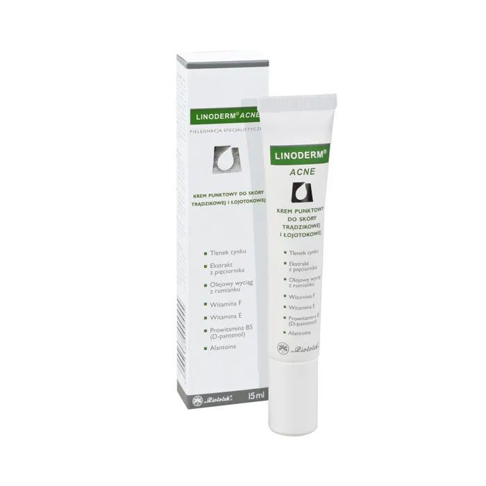 W艂a艣ciwo艣ci- Krem punktowy do sk贸ry tr膮dzikowej i 艂ojotokowej, Linoderm Acne, mo偶e by膰 stosowany samodzielnie lub jako uzupe艂nienie codziennej piel臋gnacji.