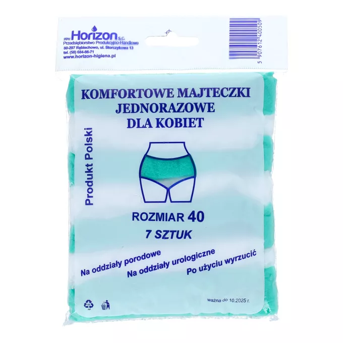OpisJednorazowe majtki poporodowe Horizon w rozmiarze 40 s膮 stworzone specjalnie dla kobiet w okresie po艂ogu. Oto kilka cech i korzy艣ci zwi膮zanych z tym produktem: