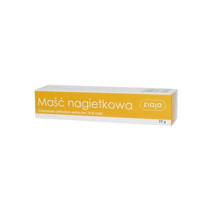 OpisMaść nagietkowa Ziaja 70% to lek OTC przeznaczony do stosowania zewnętrznego w leczeniu łagodnych stanów zapalnych skóry oraz wspomagająco w leczeniu drobnych zranień, takich jak otarcia naskórka. Produkt marki Ziaja to półstała maść o miękkiej konsystencji i żółtawo-pomarańczowej barwie, a jej substancją czynną jest wyciąg z nagietka.