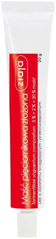 Skład100 g maści pięciornikowej złożonej zawiera: