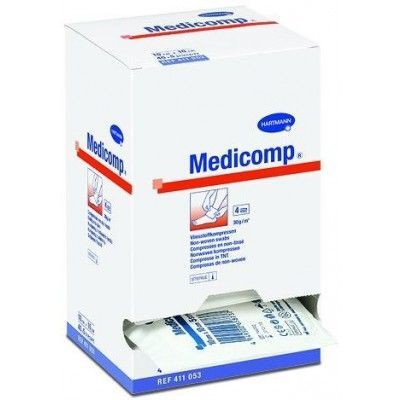 Medicomp to sterylne kompresy z włókniny o wymiarach 10 cm x 20 cm do ogólnego opatrywania ran przy zabiegach ambulatoryjnych i stacjonarnych oraz w opiece domowej.
